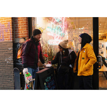 Nike SB team member Leo Baker just revealed their take on the Orange Label Pack, a series of products which change from release to release and which are available exclusively in select skate shops. Baker, who won the Street League Skateboarding Super Crown World Championship in 2016, opted for a function-first type of collection that consists of a Nike SB Bruin Hi, a Nike SB Janoski Slip On, and some tactical outerwear. The collection, while workwear-inspired, and unlike the grey void that is German winter, allows for sparks of color here and there: the Nike work jacket comes in a bright yellow and a black version, the Bruin His feature a radiant red upper. The collection also features pants and a beanie. It’s a pretty neat collection that’ll tide y’all over til Spring eventually, hopefully, finally arrives. You can buy the Nike Sb ISO Orange Label Leo Baker capsule collection at our web shop and our store in Frankfurt.