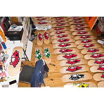 At Bonkers, we love the region of Nothern Hesse. It’s less troublesome, less hectic, and infinitely more peaceful than our bustling metropolitan area. And that’s not just us. Even back in, like, medieval times, Hessian royalty would travel the bumpy roads to Northern Hesse to seek refuge in its green, lush meadows and to relax from subjugating their peasants. In short: Northern Hesse is in the middle of nowhere; it’s where the word “Hinterland” was invented. But that doesn’t stop local skateboarders to go and shred their village’s municipal center or whatever, and to have prolific skateboarding careers. Sometimes, they’re even more successful than their elitist big city counterparts. Case in point: our good friend Danny Sommerfeld. As a young Kassel local, Sommerfeld quickly made a name for himself as one of the region’s best skateboarders. Later, he took a stab at fashion with the foundation of TPDG. And now, Sommerfeld’s even launched his own board company, aptly called Sommer. And before you think, man, not another board company from some old dude who can’t get over the fact that he’s not ripping and tearing anymore, hear us out: first, Danny Sommerfeld will fuck your shit up any day of the week, no questions asked. Second, all the decks are hand-painted by Danny himself. Yes, you read that right: hand-fucking-painted. Each one. Let it sink in. Next time you’re getting lost in the Hinterland, be aware that these folks mean business. You can buy Sommer both at our web store and at our shop in Frankfurt.