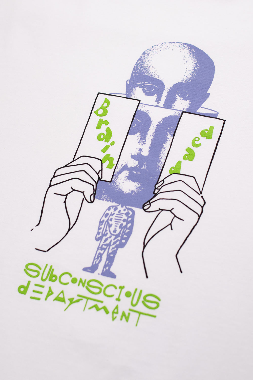 Brain Dead is een internationaal bekend creatief collectief en kledingmerk, gevestigd in Los Angeles, Californië. Het merk staat bekend om zijn ontregelende graphics, experimentele ontwerpen en een subversieve houding die zich afzet tegen de mainstream modewereld. Diep geworteld in de undergroundcultuur haalt Brain Dead inspiratie uit postpunk, skateboarden, strips en B-films. Het resultaat is een gedurfde, expressieve vorm van streetwear die staat voor kunst, rebellie en individualiteit.