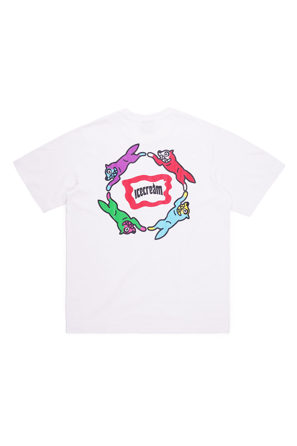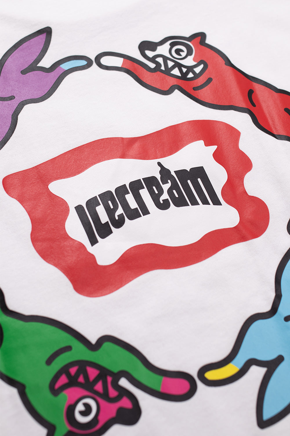 Het IceCream Roundabout T-Shirt in wit is een gedurfde en nostalgische creatie van Pharrell Williams' iconische merk, IceCream, bekend om zijn speelse en creatieve ontwerpen. Dit T-shirt heeft bedrukte graphics op zowel de borst als de rug, wat de unieke esthetiek van het merk weerspiegelt. Met een regular fit en vintage 90s single-stitching, biedt het een tijdloze en comfortabele stijl. Gemaakt van 100% katoen, voelt het zacht aan en is het duurzaam, waardoor het een must-have is voor elke streetwear-collectie, vooral voor fans van IceCream en Billionaire Boys Club.