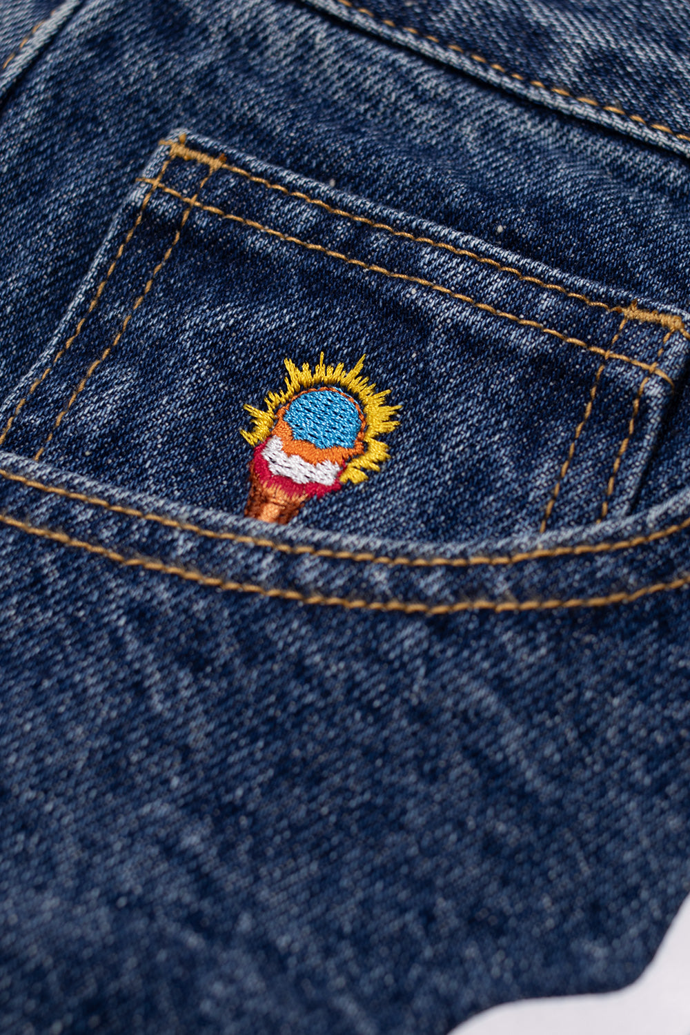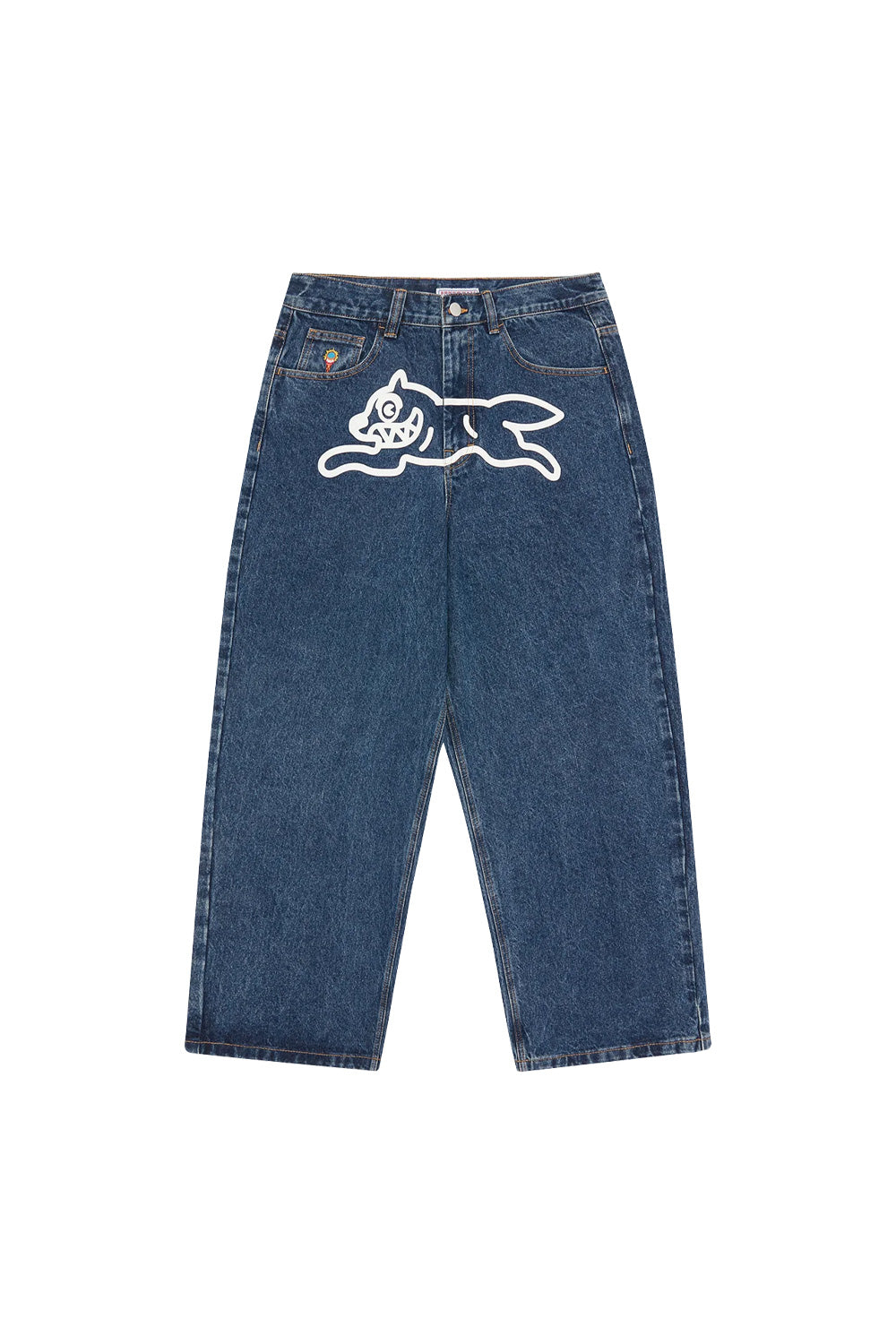 IceCream Running Dog Tripple Scoop Baggy Denim Pant Mid Wash Blauw (Witte Druk)