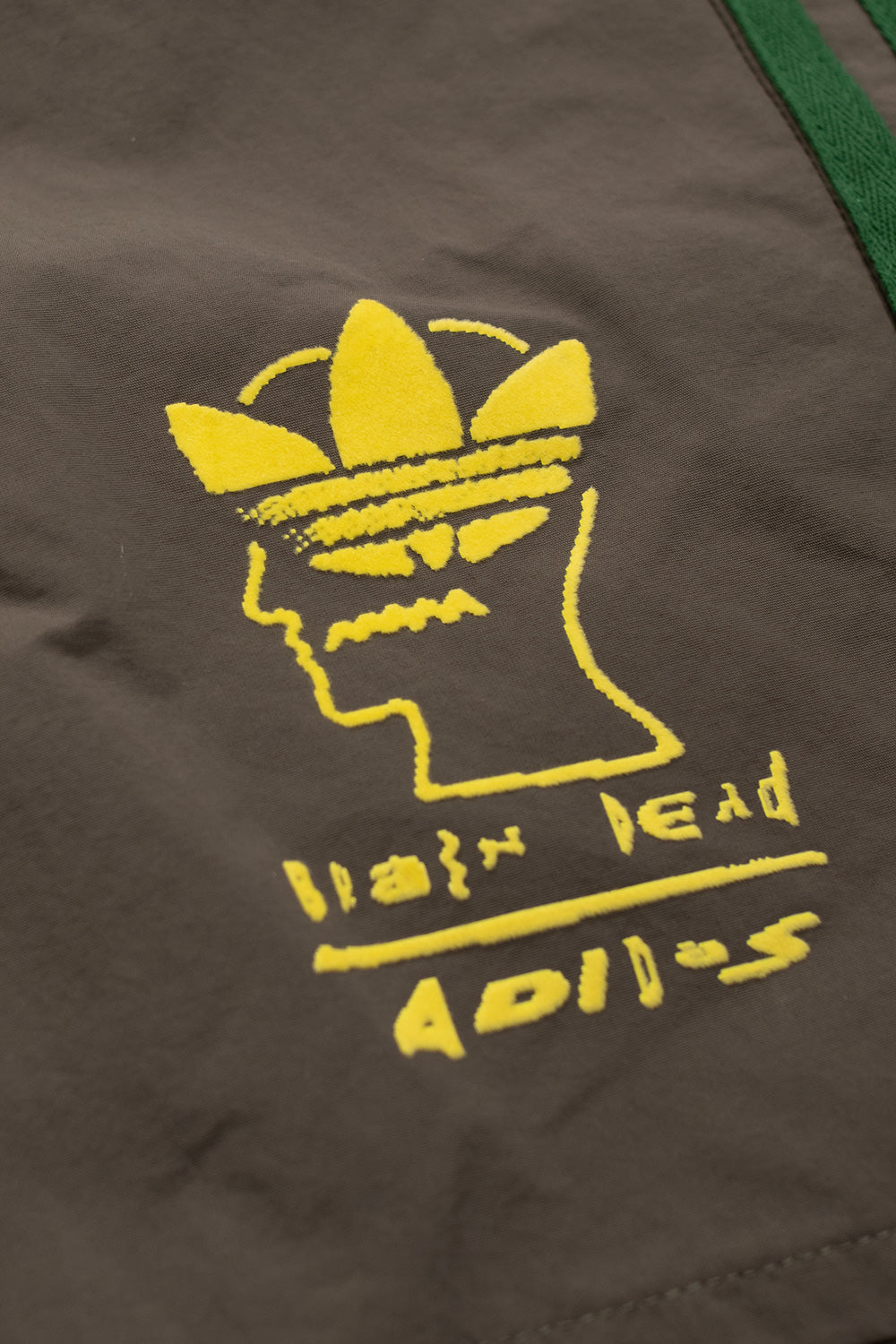 - Reimagined Adidas and Brain Dead logos in crossover artwork