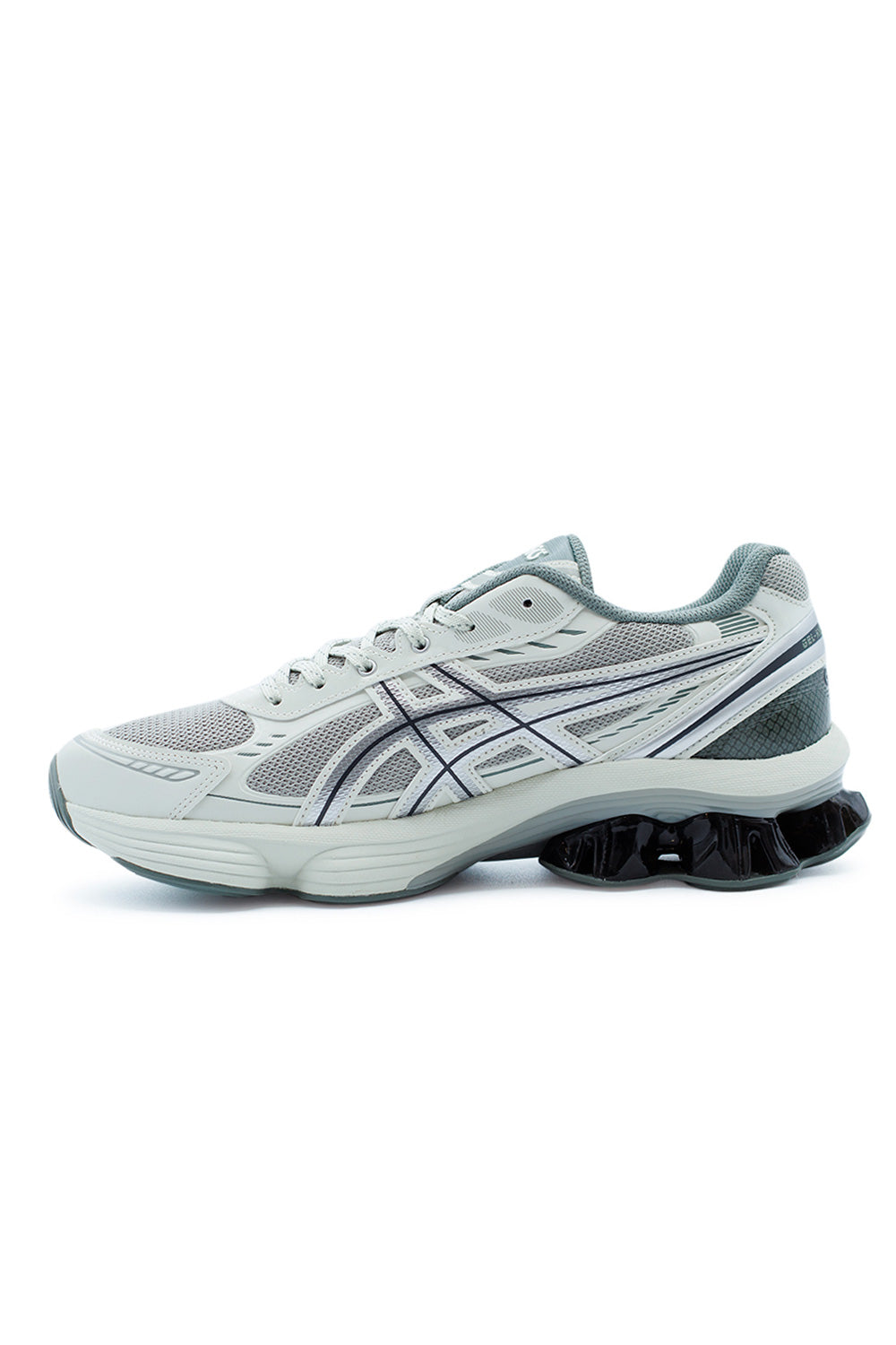 Step into futuristic performance with the Asics GEL-Kinetic Fluent in Seal Grey / Pure Silver.