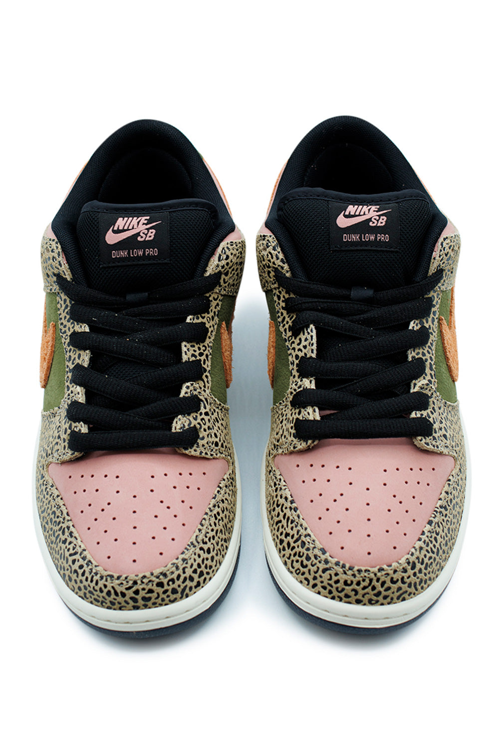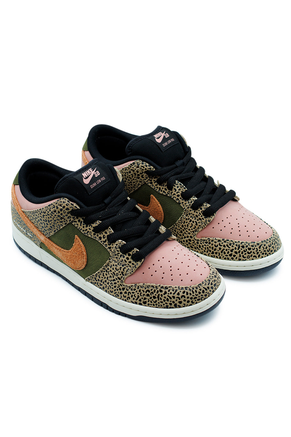 Drawing from the San Diego Zoo’s diverse wildlife and lush Balboa Park landscapes, this Dunk Low Pro blends soft textured leather in Rust Pink and Rough Green with subtle panther-print overlays in Off‑Black. A rustic color palette meets sophisticated detailing.